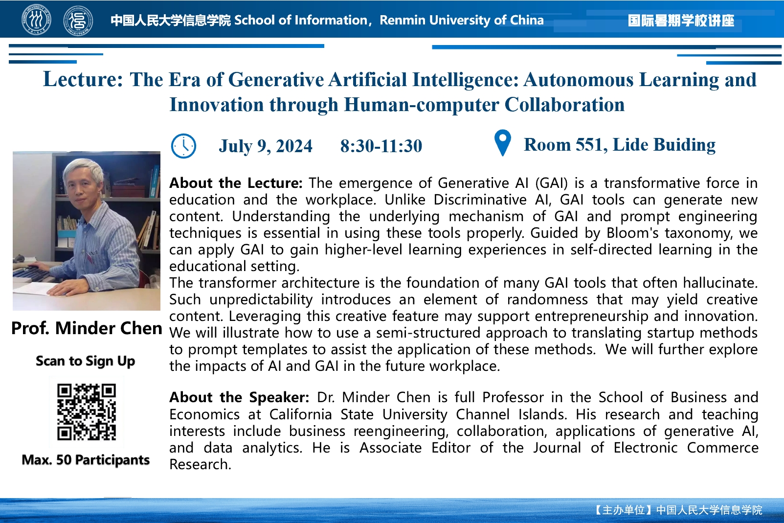 International Summer School Lecture Series | The Era of Generative Artificial Intelligence: Autonomous Learning and Innovation through Human-computer Collaboration