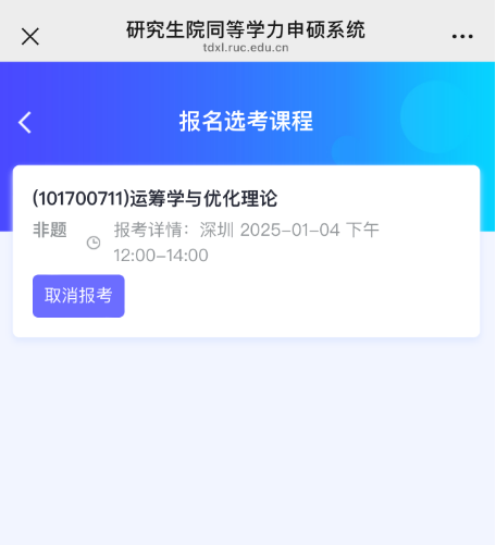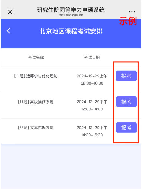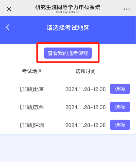 请拟申请参加本学期非题库课程考试的同学,于2024年11月28日至12月8日期间进入系统选考,逾期不再补报,也不得修改报考信息。