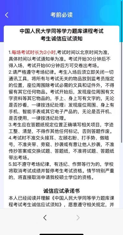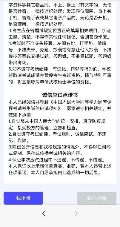 3、 阅读《巴卡漫画 同等学力题库课程考试考生诚信应试须知》及《诚信应试承诺书》,并点击《诚信应试承诺书》下方的“我承诺” 按钮。