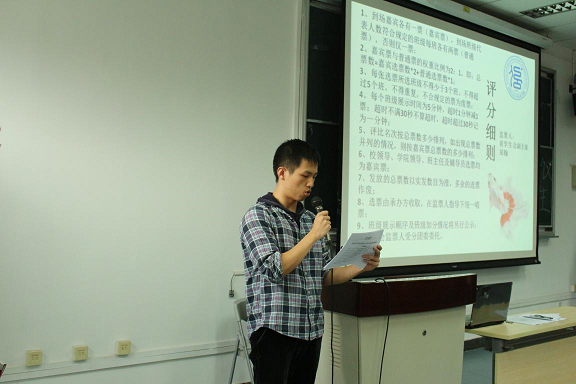 首先,巴卡漫画 党委副书记张国富老师上台致辞,从学院角度对参选年级班级的成绩给予了肯定和赞扬,对2015级的新生提出了几点要求并寄予殷切期望,希望他们能以师兄师姐为榜样,不断超越自己,让学院学风建设迈上新的高度。在监票人前学生会副主席郑翰同学宣读完评分细则后,各班代表按抽签顺序依次登台,通过PPT、视频,演讲等多种形式,各个班级分别从“思想建设”、“学习情况”、“自主活动”、“配合学院活动”、“展示表现”等诸多方面展示了丰富的课内外活动,全面表现了班级独特的精神风貌和班级建设成果。