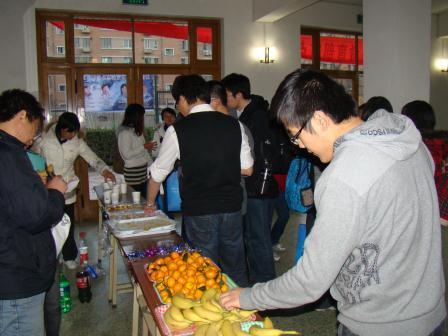 参观结束之后,同学们在信息楼大厅进行自由讨论。现场提供了点心水果饮料,在轻松自由的气氛中,同学们就感兴趣的学术问题展开了讨论,在讨论中,每个参加的同学都颇有收获。最后进行的活动是幸运抽奖。杜小勇院长,林颐书记,张孝老师参加了抽奖并抽出了多名幸运的同学,整个开放日活动在一片欢声笑语中圆满结束。