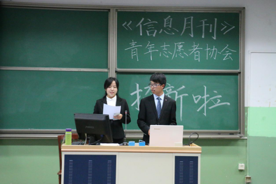 《信息月刊》杂志社社长程昊、主编文家碧分别表达了对2016级新生的欢迎,希望同学们积极加入杂志社。各部门部长分别介绍部门职能,又与新生分享了在杂志社的所见所感。《信息月刊》杂志社作为人民大学为数不多的院刊之一,拥有二十余年的历史与文化积淀,是反映学生独特视角与推广学院特色的重要宣传平台之一。