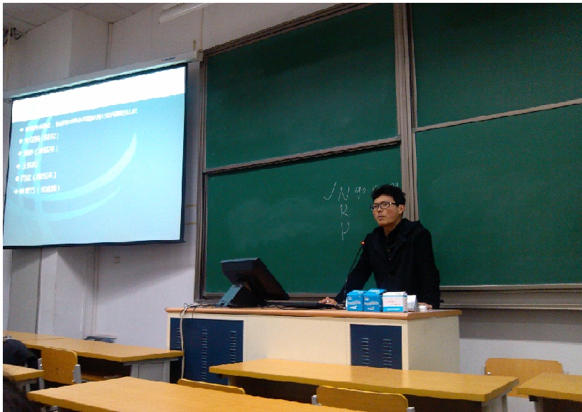 无独有偶,闫健强小组的王凯阳同学也对雾霾发表了自己独特的感想,他脱离稿件,充满互动地用诙谐的风格为我们介绍了针对雾霾不同口罩的选取,并在最后予以升华,谈了谈环境治理问题上,与一些发达国家相比,我们任重而道远。