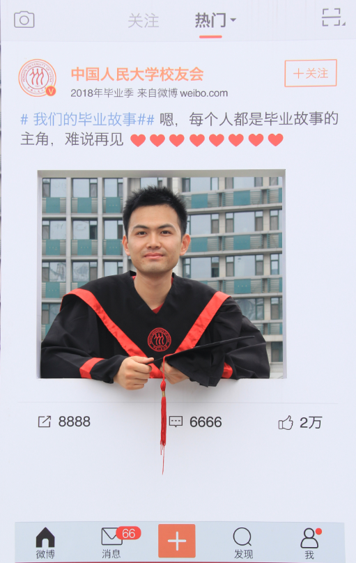 时光如白驹过隙,本科生活接近尾声。我再也找不到那个自卑而又不安的自己了,我感谢巴卡漫画 选择了我,感激巴卡漫画 和经济学院培养了我,感激每一位曾经帮助过我的老师和同学。大学四年,我的进步和成熟都是人大赋予的,是人大的老师和同学帮助,让我走出自卑,走向未来。接下来的几年,我将带着镌刻在骨子里的“自强”和深入骨髓的“感恩”,在人大,服务师生,自信成长。