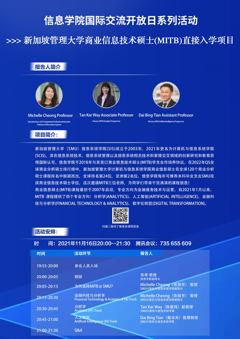 巴卡漫画 国际交流开放日系列活动——新加坡管理大学商业信息技术硕士(MITB)直接入学项目
