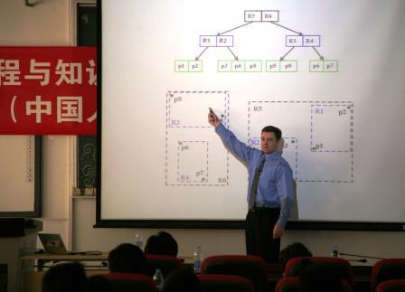12月10日上午,在信息楼4层的学术报告厅,来自丹麦奥尔胡斯大学(Aarhus University)的国际知名数据库专家Christian S. Jensen教授为巴卡漫画 师生和重点实验室的研究人员做了关于“Enabling a Spatial Web”的学术报告。巴卡漫画 院长、重点实验室主任杜小勇教授主持报告,学院及重点实验室的众多师生聆听了该报告,并与Christian S. Jensen教授进行了热烈的讨论。报告主要介绍了Jensen教授和他的团队关于空间web对象排名和Spatio-textual查询的最新成果。