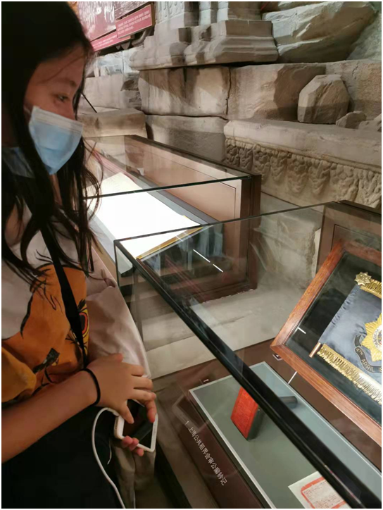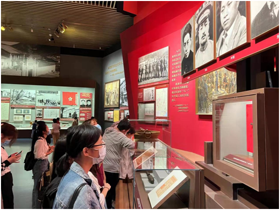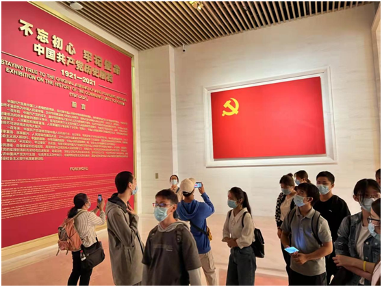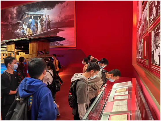 在近三个小时的参观中,数位同学沉浸在党的百年历史中,瞻仰先辈们光荣的英雄事迹,学习先辈们坚定的理想信念,深深为先辈所感动,为党的历史所震撼。师生们在文物展柜前久久驻足,在写满历史的墙下停下脚步,去细细体会中国共产党的百年岁月。