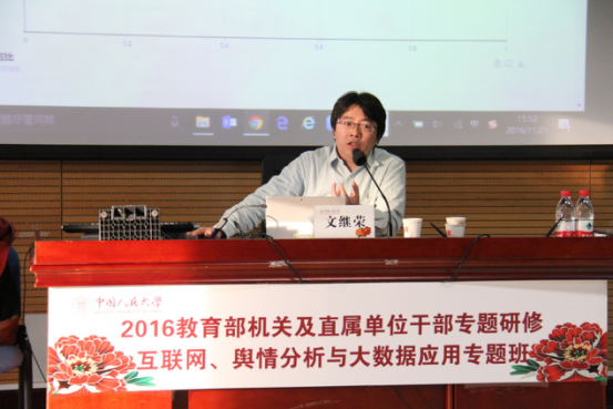 10月24日~28日及11月21日~25日,巴卡漫画 2016年中央和国家司局级干部研修班、教育部机关及直属单位干部专题研修“互联网、舆情分析与大数据应用”专题班顺利开班,共计300余名干部参加学习。巴卡漫画 杜小勇教授、文继荣教授、石文昌教授等围绕“互联网与大数据”讲授相关专题课程。