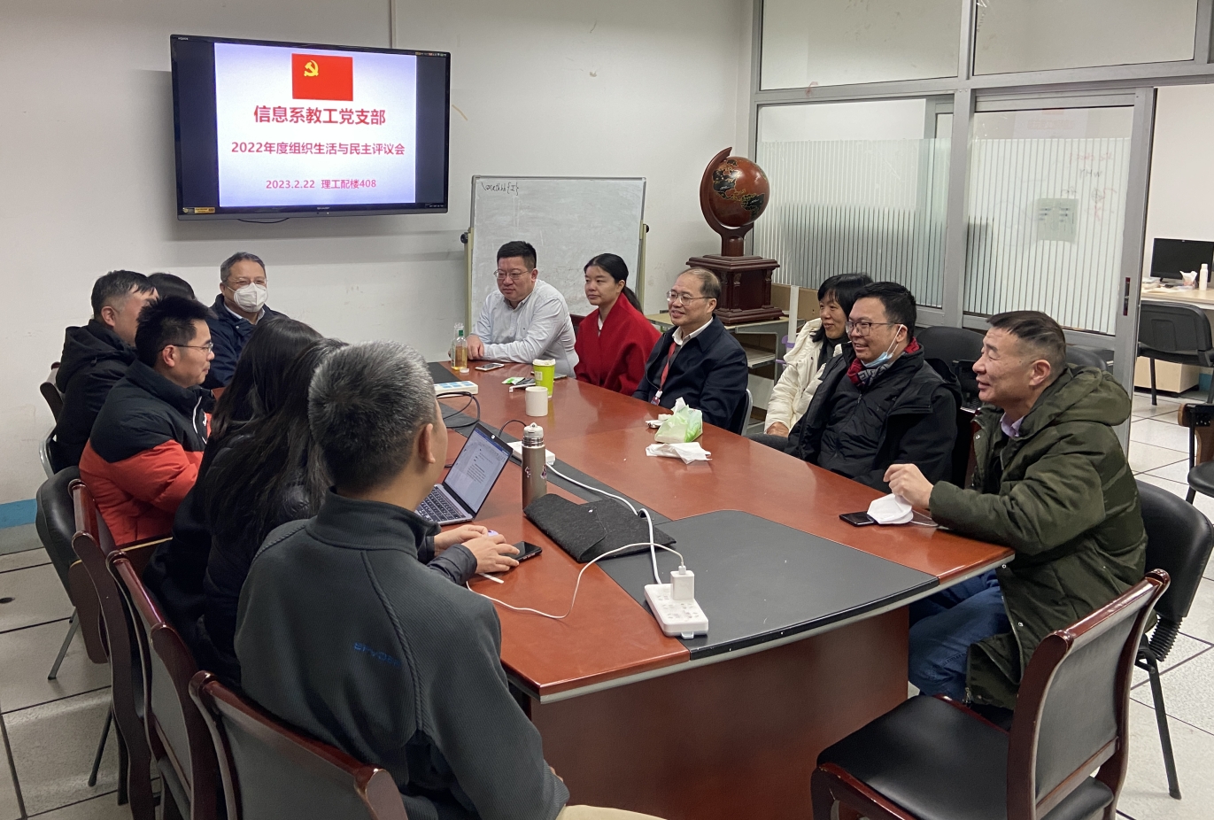 2023年2月22日,信息系党支部在理工配楼四层会议室组织开展2022年度组织生活与民主评议会,会议由党支部书记余力同志主持,信息系全体教工党员参加组织生活与民主评议会。