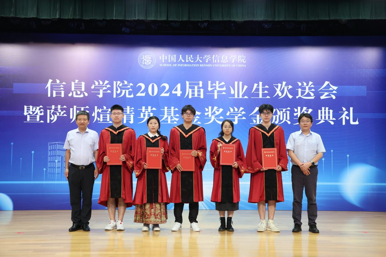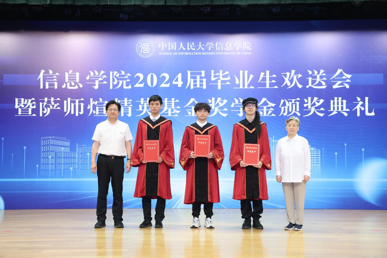 柯媛元、张国富与郭枫校友为获得萨师煊精英基金奖学金一等奖、二等奖的同学颁奖。
