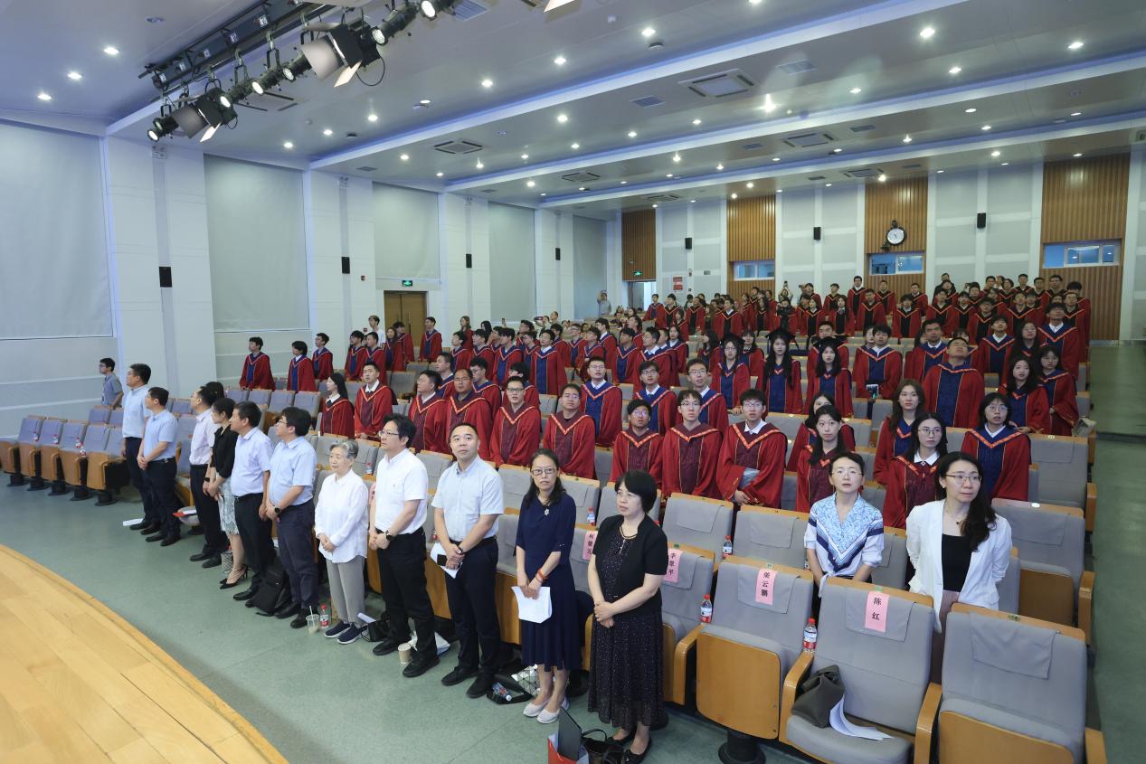 文继荣作毕业致辞。他指出,同学们已然站在人生的新起点,希望未来能够奋楫扬帆、乘风破浪,继续用青春和汗水书写人生的精彩篇章。他对同学们的不懈奋斗以及在科研项目、学术竞赛和社会实践中取得的成就感到由衷的欣慰和骄傲,并对各位家长和老师们表示衷心感谢。他寄语毕业生要坚定理想信念,勇担时代重任,将个人理想与国家发展、民族振兴紧密结合起来,为国家的繁荣富强贡献自己的力量;要始终坚持学习,不断提升自我,保持对知识的渴望和追求,不断学习新知识、新技能,提升自己的综合素质和竞争力;要继续勇于实践,持续敢于创新,善于发现问题、分析问题、解决问题,不断推动创新、寻求发展;要时刻关注社会,回到人民当中,用自己的实际行动回馈社会、服务人民,树立正确的世界观、人生观和价值观,为构建和谐社会贡献自己的力量。“人生万事须自为,跬步江山即寥廓”,他希望同学们把正方向、明确目标、顽强拼搏、不懈努力,始终追求卓越,实现更高的自我价值。