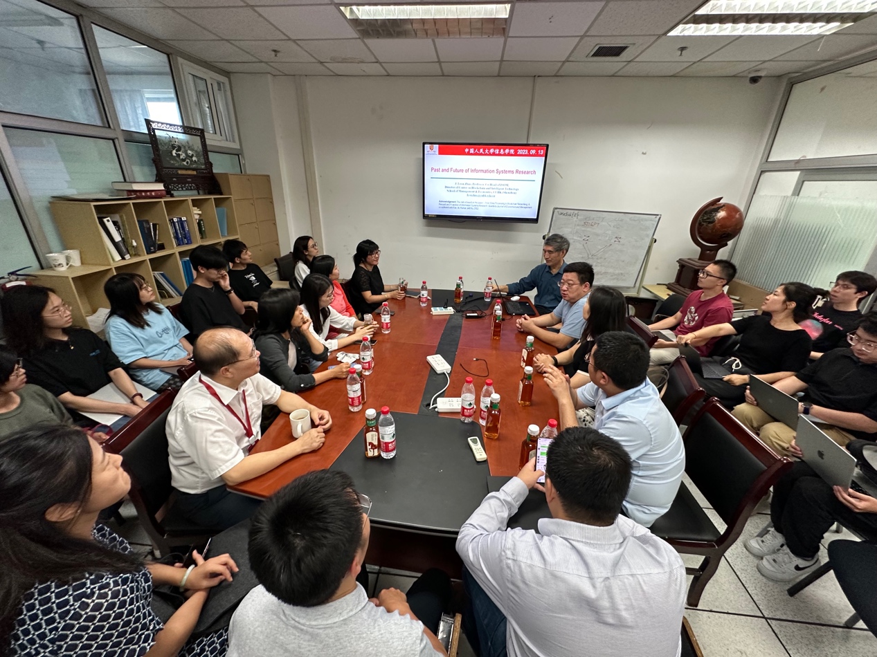 报告最后,与会教师就信息系统核心身份、信息系统领域自主知识体系建设以及信息系统学科未来发展等重要信息系统领域相关问题和赵建良教授展开了热烈讨论。赵建良教授指出,学科的自主知识体系建设是一个非常困难的问题,不仅仅是信息系统这个领域,其他领域如经济学和金融学,同样面临着研究内容交叉、研究领域界限模糊的问题,要建立自主知识体系需要长期积累,不是一朝一夕的事情。左美云教授也指出,要结合中国实际,树立文化自信,构建一套中国的、自主的、国际认可的学科自主知识体系。