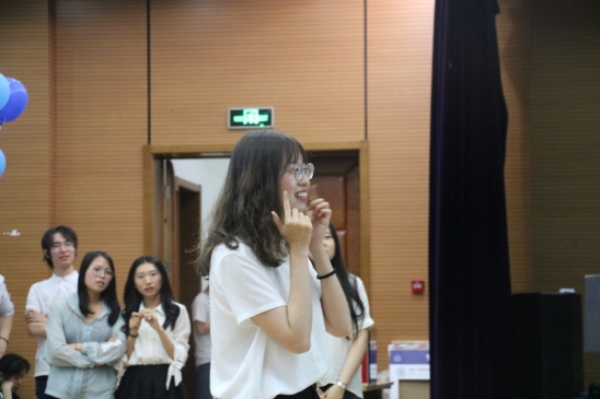 “倒着说”、“台词传话筒”、“你来比划我来猜”三个有趣的游戏环节反响热烈,现场的同学们时不时爆发出愉快的笑声。主持人随机抽取了同学们的匿名毕业感言,字里行间,充满着对学校的留恋以及对未来的展望。
