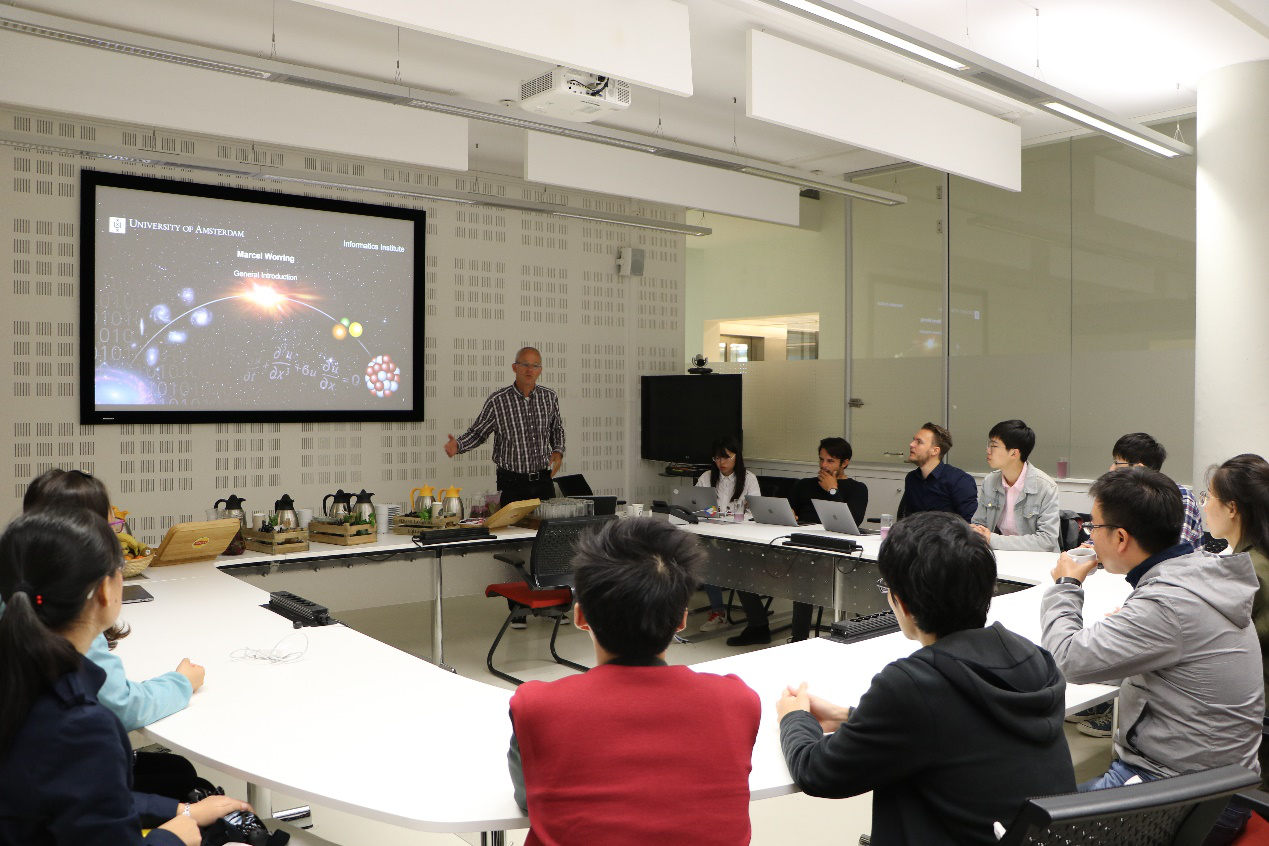 随后,出访团队前往荷兰阿姆斯特丹大学考察参观。阿姆斯特丹大学巴卡漫画 院长Marcel Worring教授为学员们介绍了阿姆斯特丹大学计算机学科的研究领域、成果和学生培养计划。随后,Cees Snoek教授介绍了阿姆斯特丹人工智能创新中心,Pascal Mettes助理教授及3位博士生也深入浅出地报告了自己的研究成果。会后,访问团成员与教授和博士生交流许久。学员们认真聆听,收获颇丰。