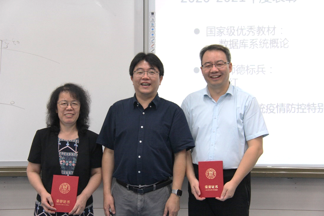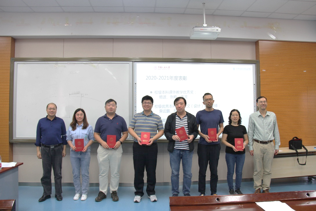 陈红书记对上一学年中荣获国家级优秀教材奖、校级师德标兵、校级七一表彰、校级学工系统疫情防控特别贡献奖、校级本科课外教学优秀奖、校级优秀本科毕业论文(设计)指导教师和校级优秀辅导员的团体或个人进行了公开表彰并进行颁奖。