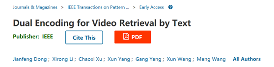 论文信息:Dong et al., Dual Encoding for Video Retrieval by Text, IEEE Transactions on Pattern Analysis and Machine Intelligence, 2021, //ieeexplore.ieee.org/document/9354593