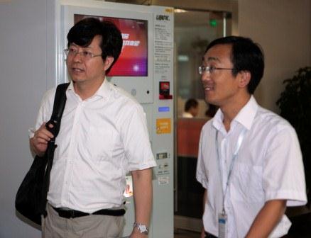 图说:杜小勇院长(左)在姜海东副总裁(右)陪同下参观京东商城总部