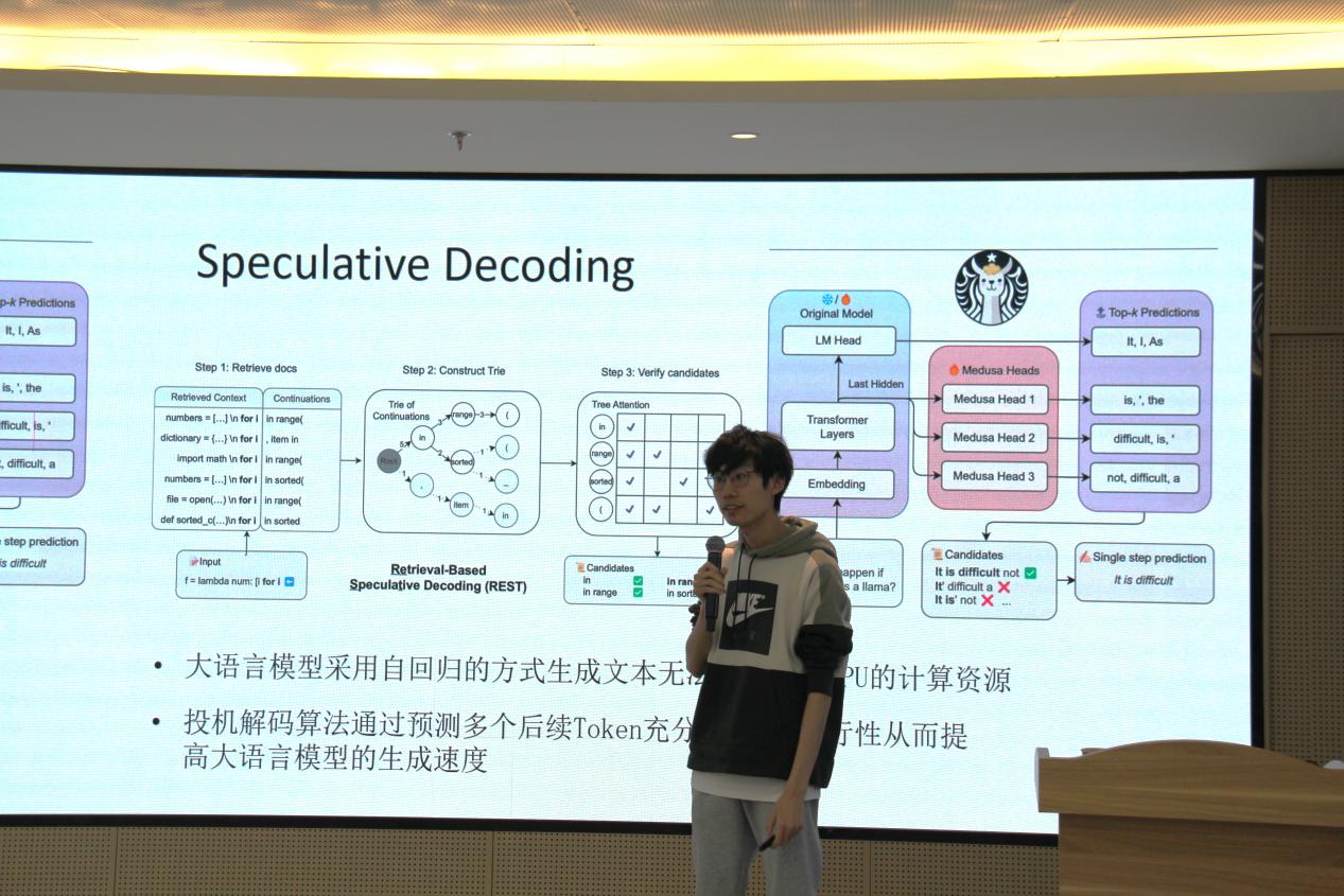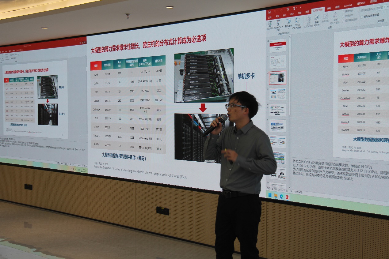 李彤老师首先带来了关于大模型时代网络系统优化的精彩报告。李彤老师详细分析了当前大规模神经网络面临的瓶颈,尤其是在计算效率和系统性能方面的挑战。针对这些问题,他提出了一系列创新性的解决方案,其中包括基于图神经网络(GNN)优化的资源调度方法和低延迟的多节点通信协议。这些方法不仅能够有效提升大规模神经网络的训练效率,还能确保模型在实际部署时的稳定性和高效性。李彤老师的研究为今后大规模AI系统的优化和实际应用提供了新的思路。