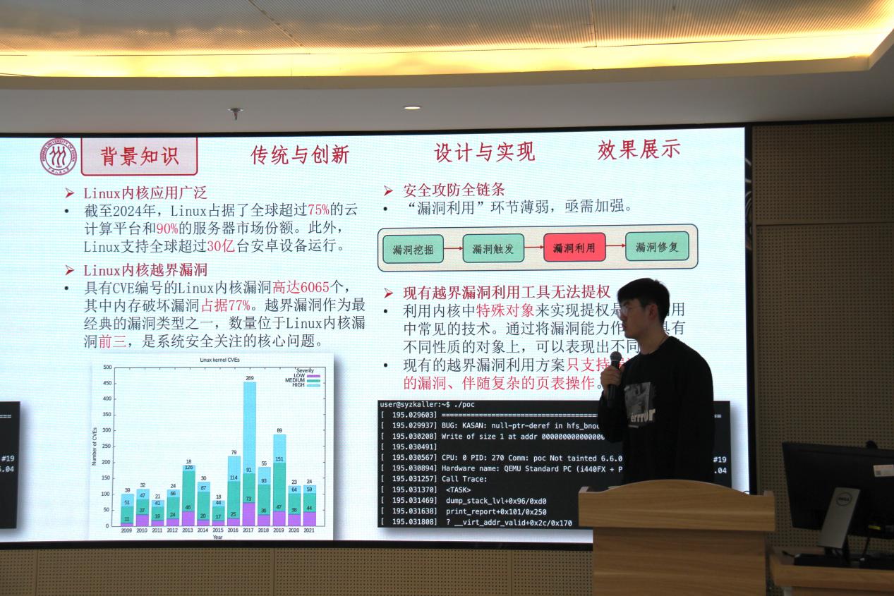 黄建军老师为大家带来了关于稀有敏感函数识别与缺陷检测的研究成果。他通过介绍一种结合静态分析和动态测试的全新方法,提出了如何高效识别软件代码中潜在的安全漏洞和性能瓶颈。黄老师的研究尤其在软件安全领域具有重要意义,不仅提升了检测精度,还显著减少了传统检测方法的计算开销。通过这一创新方法,软件开发人员可以更早、更准确地发现并修复系统中的缺陷,从而保障软件产品的安全性和稳定性。
