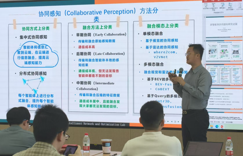 王永才老师带来了协同感知研究的最新进展,介绍了他在多传感器环境下协同感知与决策的研究成果。王老师提出了一种基于集成学习和图优化技术的多目标协同感知框架,该框架能够有效整合来自不同传感器的信息,实现对目标的精准定位和行为预测。这一框架不仅提升了自动驾驶领域的感知能力,也在智能制造等领域具有广泛的应用前景。