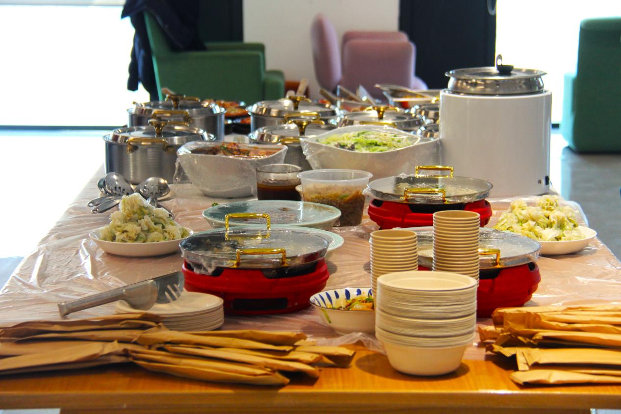 中午计算机系的师生们在会议室旁边的活动空间进行了简单又丰盛的美食分享环节,多位老师带来了从家里自己精心制作的美食,与大家分享。大家边吃饭边交流,还有投壶等一些有趣的活动。