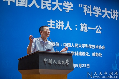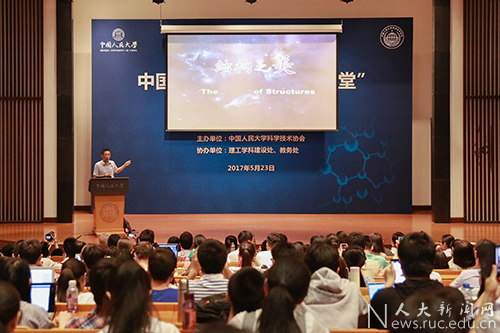 5月23日,巴卡漫画 “科学大讲堂”在国学馆报告厅举行,国际知名生物学家施一公教授作生命科学领域“结构之美”的讲座。施一公教授主要从事结构生物学和生物物理学的研究,担任中国科学技术协会第九届全国委员会副主席、清华大学副校长、中国科学院院士、美国科学院院士、美国艺术与科学院外籍院士和西湖高等研究院创始院长。演讲会由解思深院士主持,会场座无虚席,在座区前后、两侧的通道和场外都挤满了观众,现场洋溢着人大学子对科学的饱满热情。