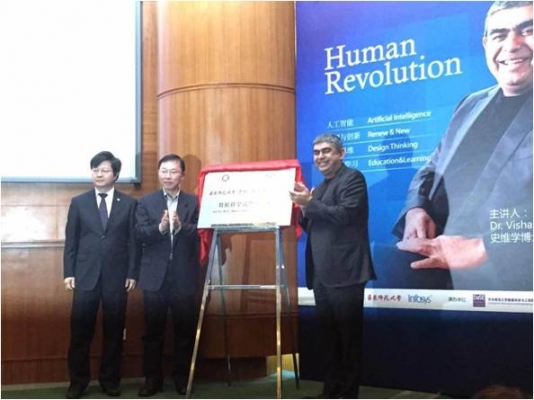2015年3月25日在华东师范大学举行隆重仪式,为“华东师大-人民大学-印孚瑟斯数据科学联合实验室”揭牌并举办学术报告会。