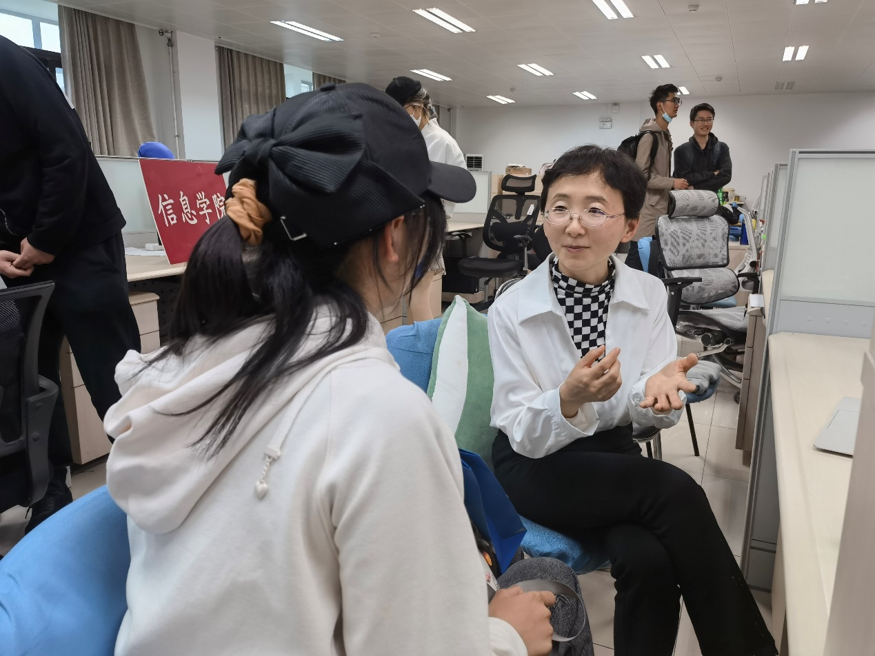 完成宣讲的老师们也来到500实验室,与同学们亲切地一对一交流,解答同学们的疑问,为同学们的学习和科研指点迷津。