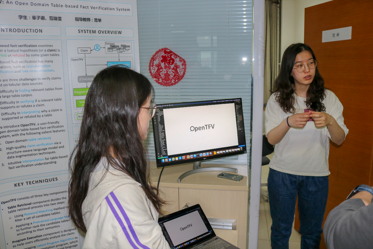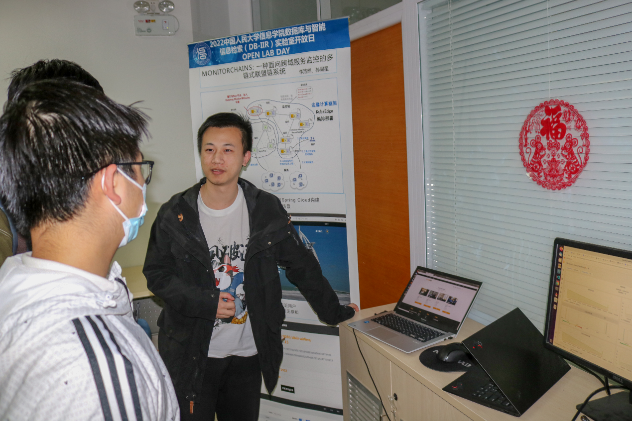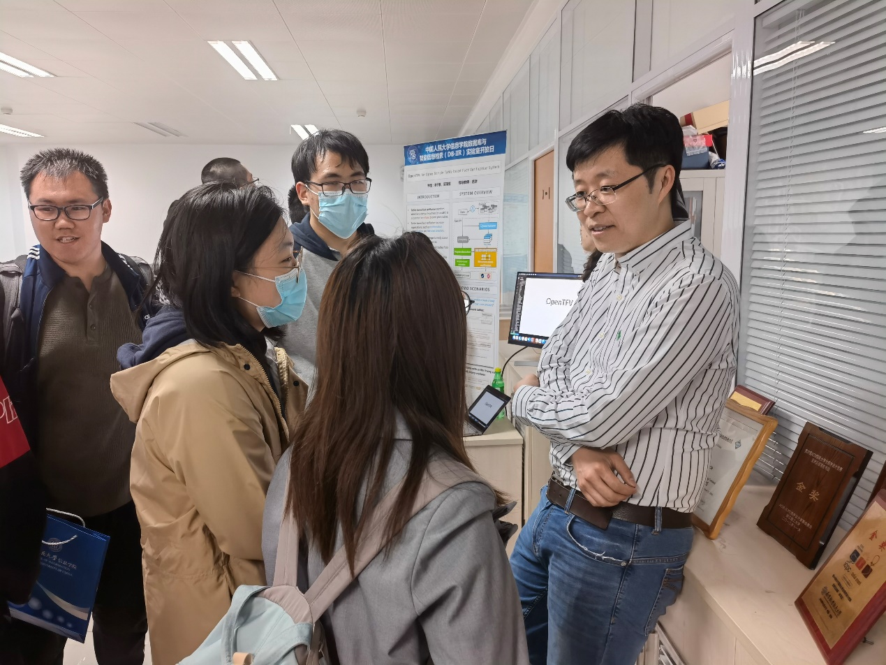 来自四个研究组的同学们在500实验室为大家展示了自己的研究成果,从卢卫老师组的WookongDB,王璞巍老师组的monitorChains,到范举老师组的基于结构化的事实核查系统和张峰老师组的压缩数据直接处理技术,同学们通过一个个可互动的展示深入了解本科生在实验室的科研产出,认识到本科生可以在实验室做出的成果,对于实验室的科研工作有了更直观的感受。人大ICPC队也在现场设置了展台,通过展示十余年来人大同学们夺得的一系列奖牌,向大家介绍了在信息学科竞赛方面人大同学们的优异表现和成熟高效的培养路径。