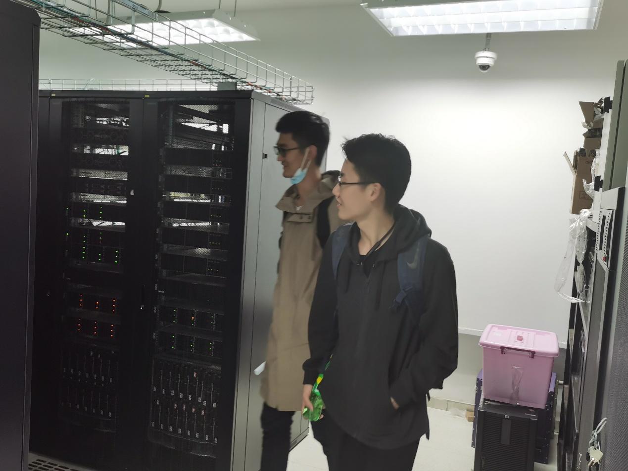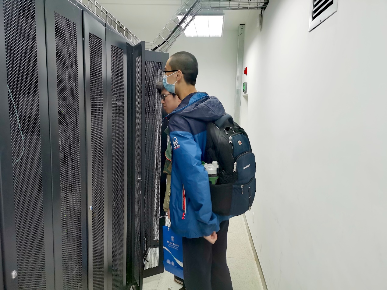 最后,同学们来到位于信息楼一楼的机房,在刘佳伟同学的带领下深入机房内部,近距离接触实验室轰隆作响的服务器机柜,了解了服务器的工作原理,见识到了实验室雄厚的科研设备基础。