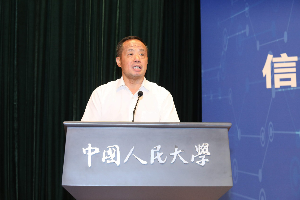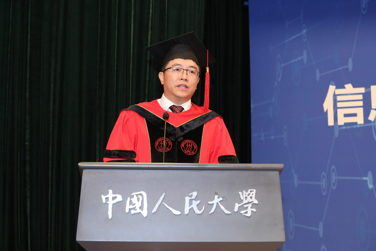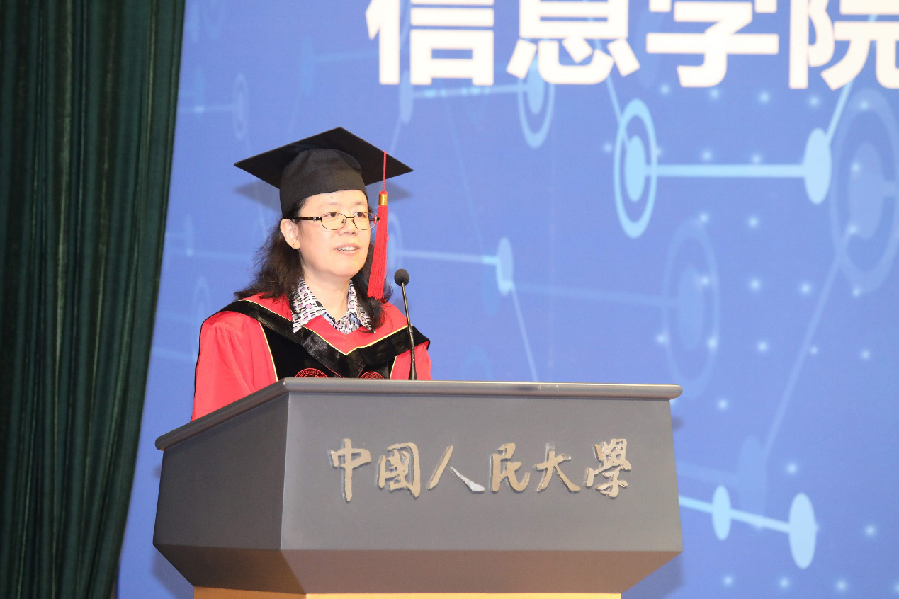 教授代表、我校理工学科建设处处长杜小勇教授致辞,他用代表信息的“0”和“1”向同学们阐述了人生道路上的哲理,希望同学们无论顺境逆境,均能够保持乐观心态,努力奋斗,也希望同学们无论何时何地,都能够保持健康体魄,为祖国贡献力量。