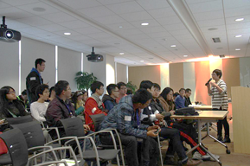 下午两点钟,巴卡漫画 师生抵达位于中关村西区的微软亚洲研究院。在高校关系经理吴国斌介绍中拉开了活动序幕:“微软公司主营四种业务,赚四种钱。第一种是做产品后期的支持和维护,赚昨天的钱,第二种是市场和营销,赚今天的钱;第三种是研发新的产品,赚明天的钱;最后一种也就是微软亚洲研究院在做的,赚后天的钱。研究院主要在做的是扩展前沿,用更多更好更创新的方法探索新的理念和方向,为后天的生活描绘蓝图。”