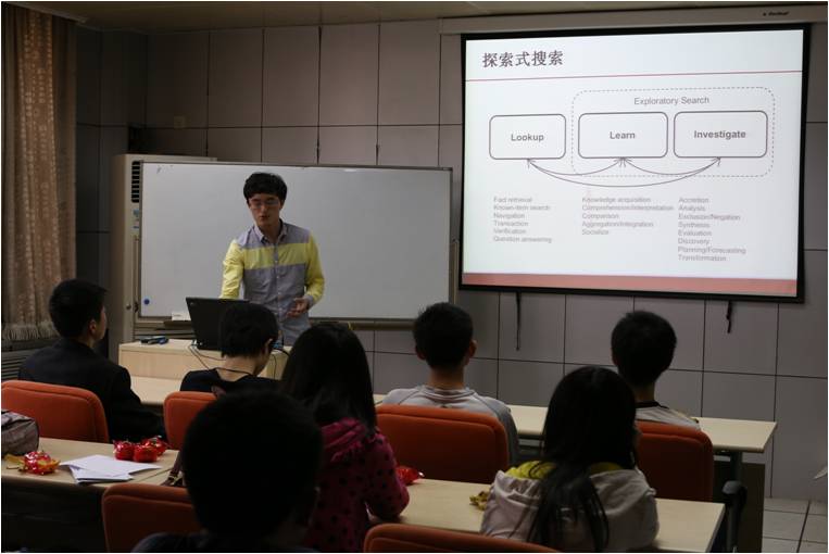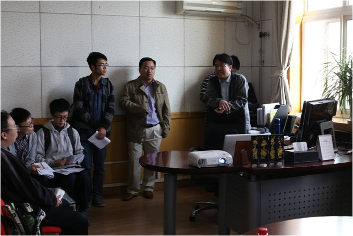 (图说:文继荣教授为同学们讲解研究方向)