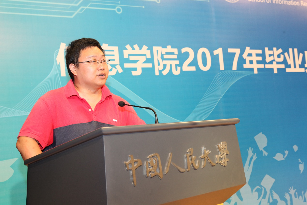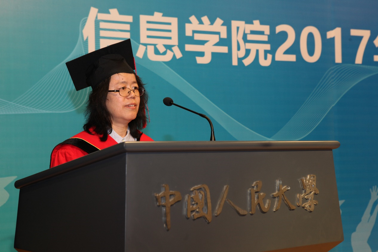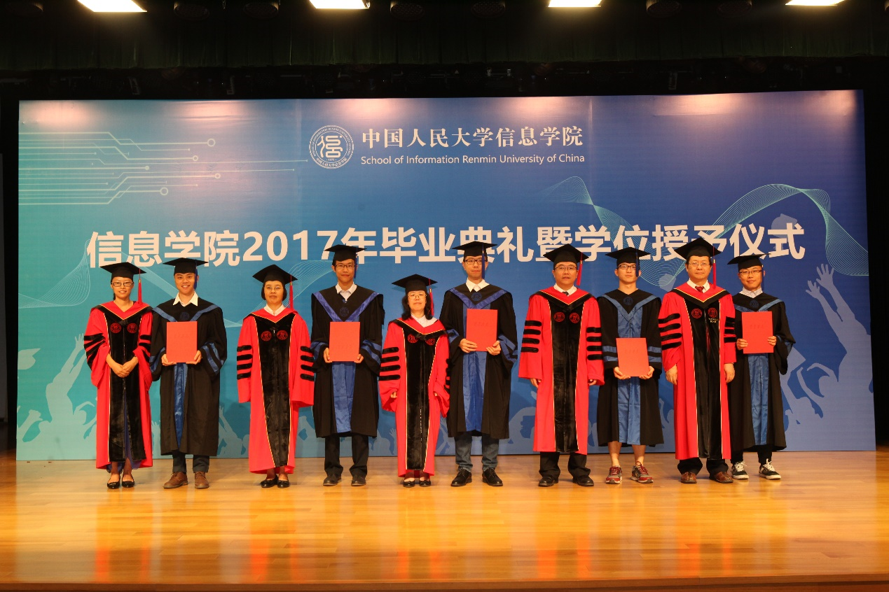 巴卡漫画 院长文继荣教授宣读《巴卡漫画 关于授予学士、硕士学位的决定》。巴卡漫画 前院长王珊、学术委员会成员及领导班子依次为巴卡漫画 2017届本科毕业生、硕士毕业生颁发学位证书、授予学位。