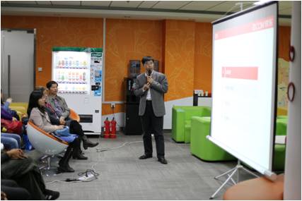 (图说:工作人员为信息学子讲解运营机制)
