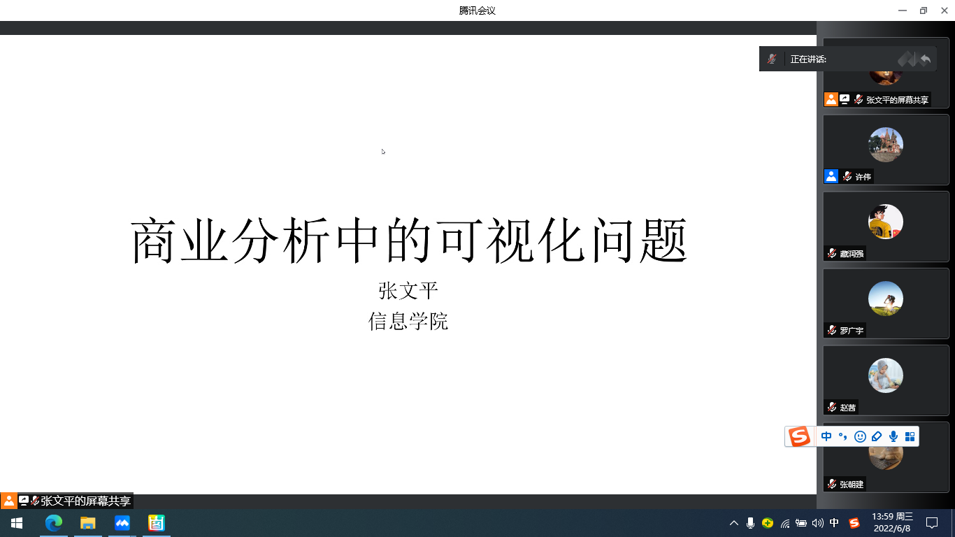 6月8日,巴卡漫画 “疫情防控、信息在行动!”系列讲座顺利举行,讲座主题为“商业分析中的可视化问题”,由经济信息管理系张文平副教授主讲,信息系主任许伟教授主持, 20余名师生参加了线上讲座。