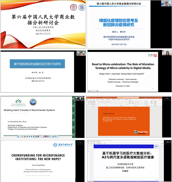 2021年11月17日,第六届巴卡漫画 商业数据分析研讨会在巴卡漫画 理工配楼四层会议室成功举办,此次会议由巴卡漫画 经济信息管理系主办,中国科学院自动化研究所曹志冬研究员,北京航空航天大学经济管理学院姚忠教授,北京航空航天大学生物与医学工程学院、国际交叉科学研究院张冀聪教授,俄勒冈州立大学Bin Zhu副教授,北卡罗来纳大学夏洛特分校Xi Niu副教授,约克大学Ling Jiang助理教授,上海外国语大学国际工商管理学院骆雪琛助理教授及多位来自国内外知名高校的信息系统专家学者出席了本次研讨会。