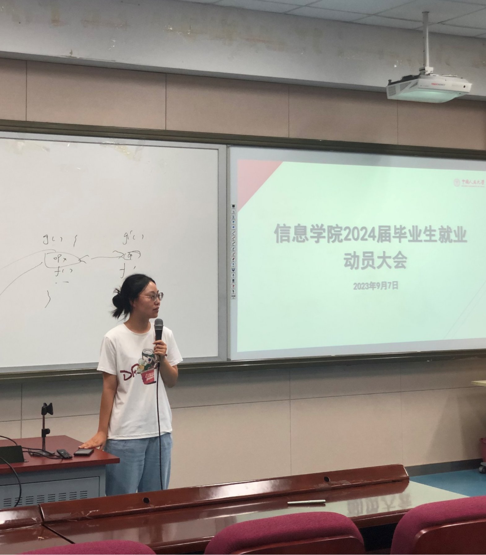 程梦倩具体向毕业生介绍了中央和地方选调、公务员、各地人才引进等政策和招聘流程,针对签约流程、就业手续办理、重要材料和注意事项等做了详细讲解,并告知大家要及时关注学院就业群以及学校就业办发布的各种招聘信息,鼓励毕业生在不断求职中积累经验,明确就业方向。
