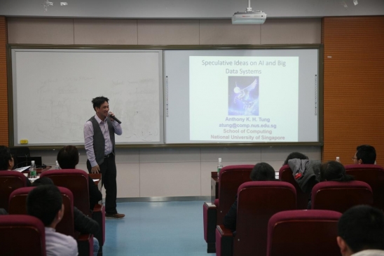 新加坡国立大学的Anthony K.H. Tung教授作了题为“Speculative Ideas on the Development of AI and Big Data Systems”的报告。Anthony K.H. Tung教授与大家分享了一些关于人工智能和大数据系统发展的观点,并且与在座的老师和同学互动,研讨会现场气氛热烈。