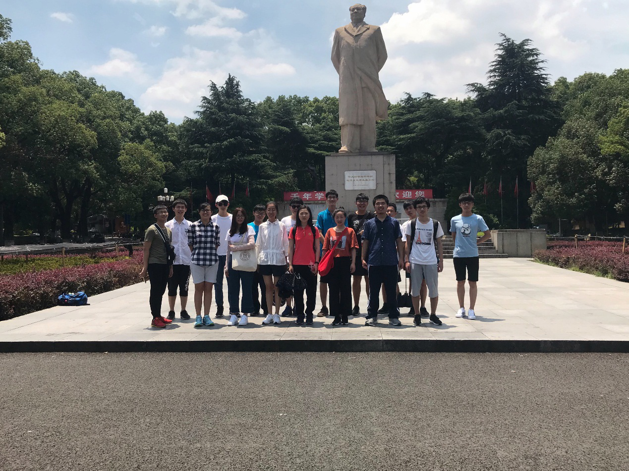 7月17日上午,实践团队攀登了岳麓山,瞻仰黄兴、蔡锷等名人墓;游览了东方红广场,瞻仰毛主席雕塑像,并在东方红广场合影留念。