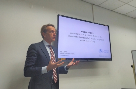 Nick Guldemond教授详细阐述了欧洲的整合照料(integrated care)模式,包括以人为中心的整体健康模型和“看门人机制”等等。Guldemond教授同时提到,IT和健康护理的融合不容易,需要大量的培训以及整个系统的全面升级。中国已经有诸如“平安好医生”这样的成功案例,希望未来可以加强合作和研究。