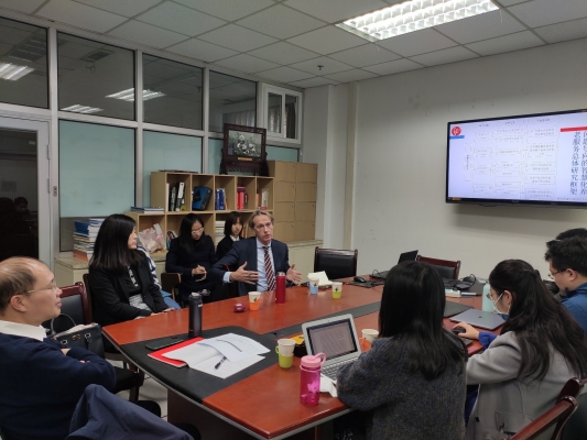 2019年10月22日上午,荷兰伊拉斯谟大学卫生政策与管理学院教授Nick Guldemond来到巴卡漫画 智慧养老研究所,做了主题为“欧盟框架计划中医养结合创新项目”的报告。
