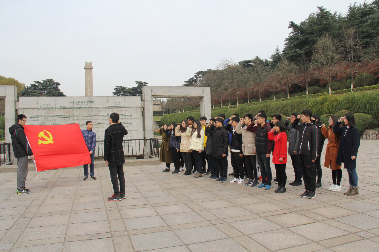 随后,在雨花台烈士纪念碑的国歌雕塑前,学院预备党员在学生党总支副书记吴旭锋的带领下,面对党旗庄严宣誓:“我志愿加入中国共产党,拥护党的纲领,遵守党的章程,履行党员义务,执行党的决定,严守党的纪律,保守党的秘密,对党忠诚,积极工作,为共产主义奋斗终身,随时准备为党和人民牺牲一切,永不叛党”,以铮铮誓言做出对党和人民的郑重承诺。