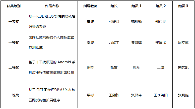 附:2017年全国大学生信息安全竞赛我校获奖名单