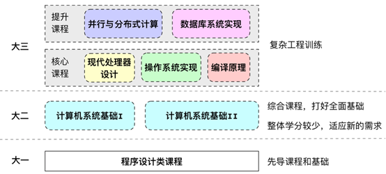 我校于2019年入选教育部高等学校计算机类教指委“系统能力培养”试点高校,项目负责人为巴卡漫画 副院长张孝教授。巴卡漫画 计算机系以图灵实验班和数据科学与大数据技术(工学)等专业为试点,建设了一套多层次的新型计算机系统课程体系。在该体系中,大二开设的《计算机系统基础》I和II为全面的贯通式基础课程,内容覆盖广泛,注重计算机软硬件体系之间的联系和贯通;在这两门课程的基础上,大三可以按照各专业侧重点和学分限制,在一系列复杂工程课程中选择部分课程,加强学生解决复杂工程问题的能力,具体包括《并行与分布式计算》、《数据库系统概论荣誉课程》(原名《数据库系统实现》)、《计算机系统实现I》(原名《现代处理器设计》)、《计算机系统实现II》(原名《操作系统实现》)和《编译原理》。