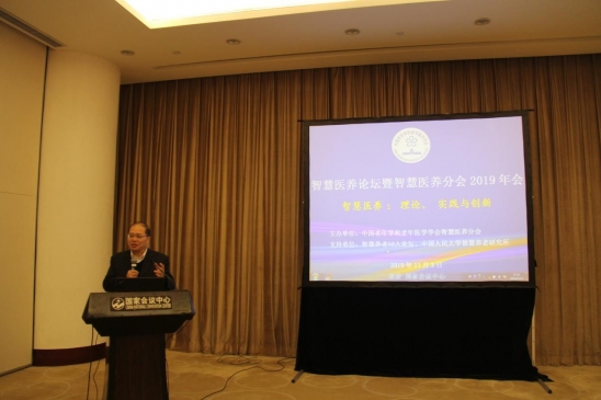 首先中国老年学和老年医学学会会长刘维林以“智慧健康养老服务业的发展和创新”为主题进行了发言。刘会长指出:智慧养老并不是智能技术和养老产业的简单相加,而是通过技术手段,提高老年人生命和生活质量。当前,依据国家战略部署,政府正积极推动智慧健康养老平台建设,我国智慧健康养老服务业进入高速发展期。但我国相关产业仍处在发展初期,不免存在一定的问题。因而未来相关产业应坚持以老年人的需求为中心,以问题为导向,规划引导、政策支持、资本跟进、市场驱动、互联互通、产业集成,为广大老年人健康养老提供优质适用、便捷可及、安全高效的产品和服务。