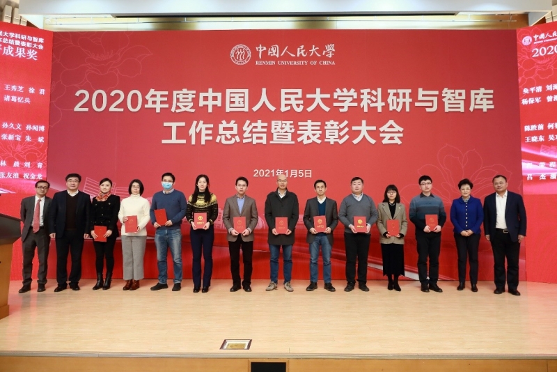 1月5日上午,我校召开2020年度科研与智库总结暨表彰大会。会议举行了2020年度科研标兵、科研优秀奖、优秀科研成果奖、科研工作先进集体、优秀科研秘书以及2020年度巴卡漫画 国家高端智库建设先进集体与先进个人表彰暨颁奖仪式。党委书记靳诺、校长刘伟、副校长刘元春、顾涛出席会议。巴卡漫画 荣获“科研工作先进集体”称号,程絮森教授获优秀科研成果奖,院长文继荣教授作为科研工作先进集体代表在表彰大会上发言。