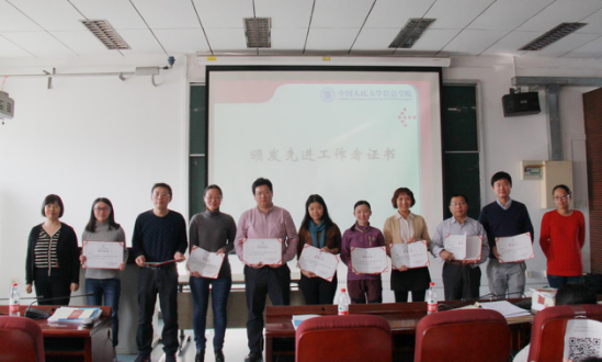 陈红书记介绍2016年度学院教学、科研、社会服务及管理服务先进工作者。李翠平副院长、柯媛元副院长为各位先进工作者颁奖。
