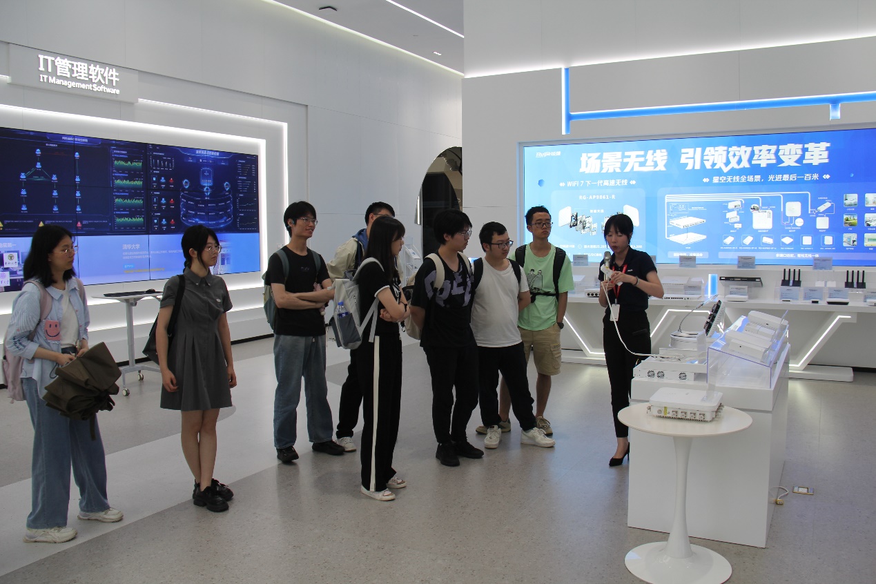 5月21日,师生前往锐捷网络有限公司参观调研。师生在公司人员的带领下参观公司展厅,并与公司技术团队进行座谈。作为数据通信解决方案的品牌,锐捷网络坚持走自主研发的道路,将技术与应用充分融合,多年深耕国家政务信息化工程建设,持续赋能政务数字化转型升级。在座谈会上,公司代表和游伟副教授,李彤副教授在技术问题上展开了深入交流,达成多项合作共识。