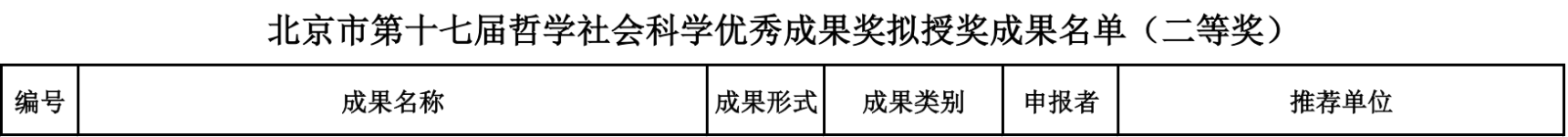 北京市哲学社会科学优秀成果奖是中共北京市委、北京市人民政府为繁荣发展首都哲学社会科学事业,鼓励社科工作者围绕改革开放和社会主义现代化建设,开展学术研究,推动理论创新,服务首都发展而设立的政府奖。自1987年开展第一届评奖工作以来,每两年评选一次。作为北京市哲学社会科学领域最高奖项,获奖成果代表首都哲学社会科学学术研究水平,同时也服务于首都经济社会发展和国家改革开放的各项事业。本届共有210项成果获奖,其中特等奖5项、一等奖40项、二等奖165项。获奖成果涵盖了哲学社会科学所有领域,成果类型包括论文、专著、调研报告、社科普及读物等。